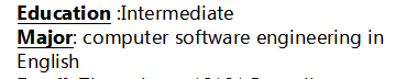 學(xué)歷: 本科 期望薪資: 3000-4000(Yuan/M)