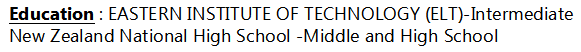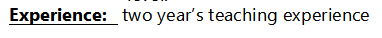 教育背景: 美國東部理工大學(xué)(ELT)中級 新西蘭國家高中 初中 教學(xué)經(jīng)驗(yàn): 兩年教學(xué)經(jīng)驗(yàn) |