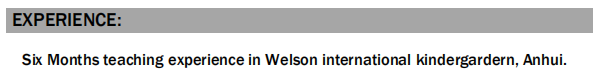 教學(xué)經(jīng)驗(yàn): 安徽國(guó)際幼兒園 6個(gè)月教學(xué)經(jīng)驗(yàn) |