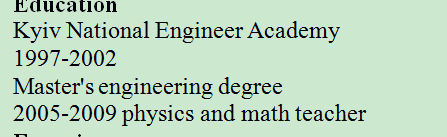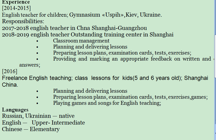 國(guó)籍: 俄羅斯 求職意向: 教師