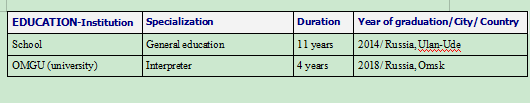 國(guó)籍: 俄羅斯 求職意向: 教師
