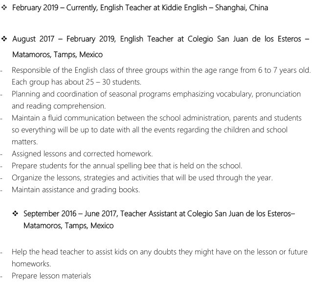 國(guó)籍: 摩洛哥 求職意向: 教師