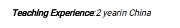 國籍: 其他 求職意向: 教師