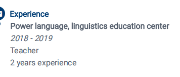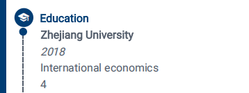 工作經(jīng)驗(yàn): 語言學(xué)教育中心2018年-2019年老師2年經(jīng)驗(yàn) 教育背景: 浙江大學(xué)2018年國際經(jīng)濟(jì)學(xué) |