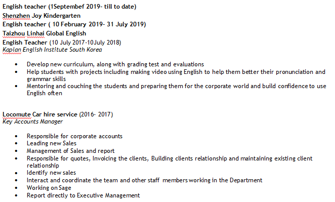 國籍: 巴基斯坦 求職意向: 教師