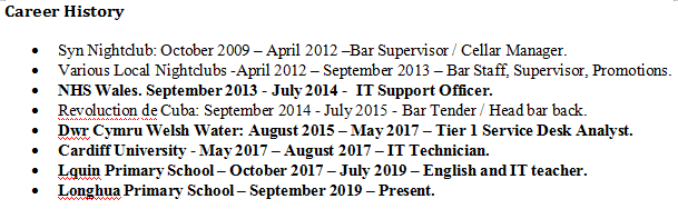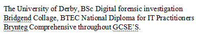 Lquin小學(xué)– 2017年10月– 2019年7月–英語(yǔ)和IT老師。 ?龍華小學(xué)– 2019年9月–至今。 教育 ?德比大學(xué)(University of Derby)BSc數(shù)字法證研究 |