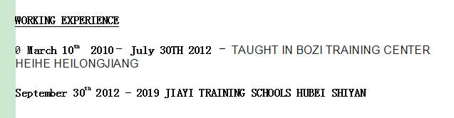自我介紹,介紹8年多中國教學(xué)經(jīng)驗,所有年齡段的學(xué)生都能教,發(fā)音很棒