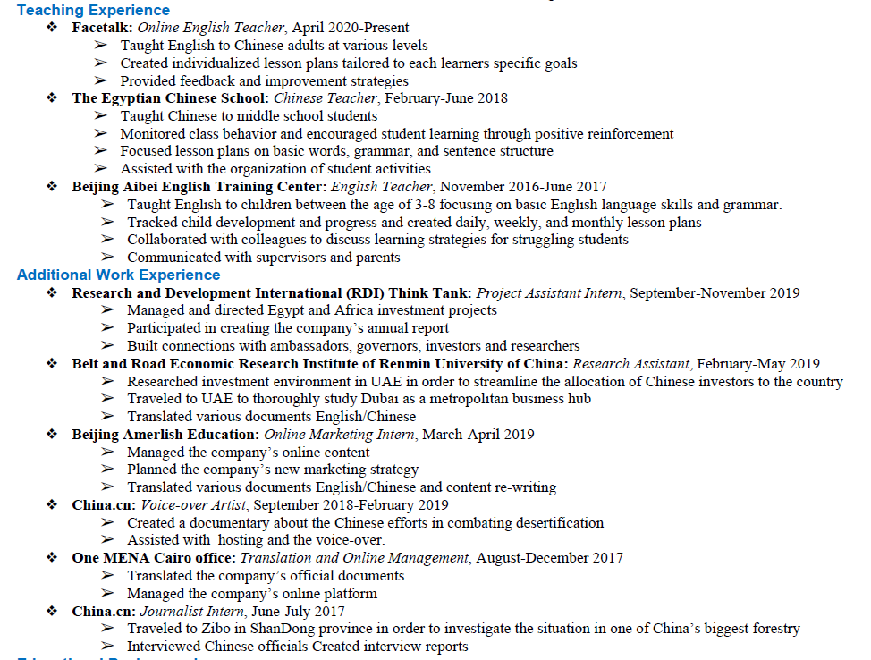國籍: 摩洛哥 求職意向: 教師