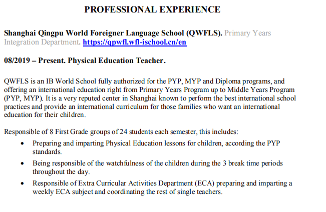 面試詳情:『上海,浙江,江蘇或附近』的用人單位可約該外教面試