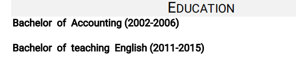 會(huì)計(jì)和英語(yǔ)教學(xué)專業(yè)本科,在中國(guó)有教學(xué)經(jīng)驗(yàn) |