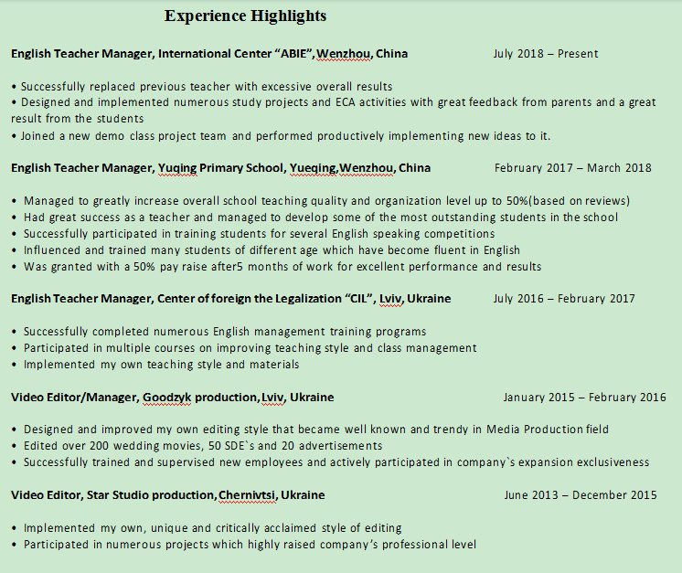 國籍: 波蘭 求職意向: 教師