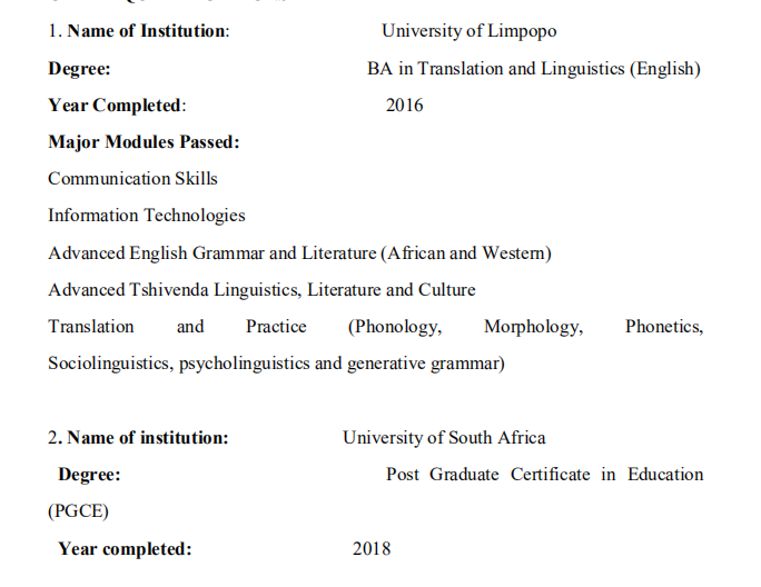 南非大學(xué)取得教育碩士,本科英語翻譯文學(xué)專業(yè),有中學(xué)和培訓(xùn)機(jī)構(gòu)教學(xué)經(jīng)驗(yàn) |