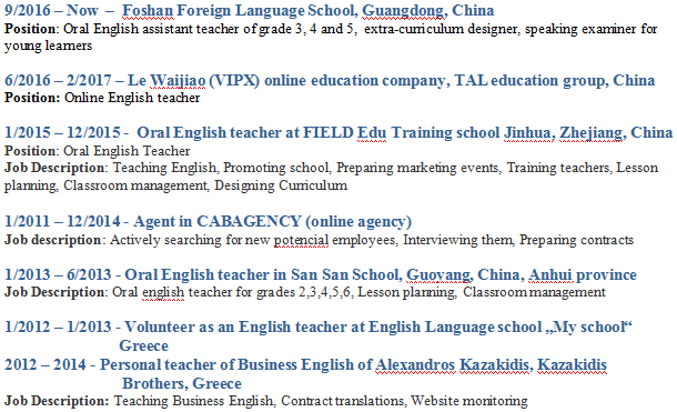 國籍: 俄羅斯 求職意向: 教師