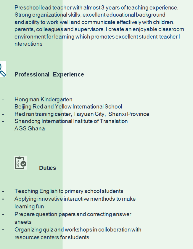 國(guó)籍: 津巴布韋 求職意向: 教師