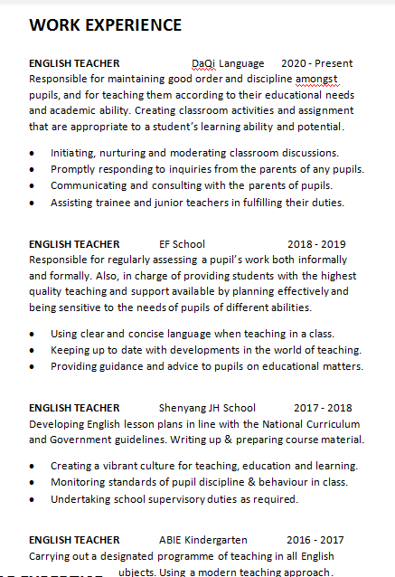 面試詳情:『沈陽』的用人單位可約該外教面試