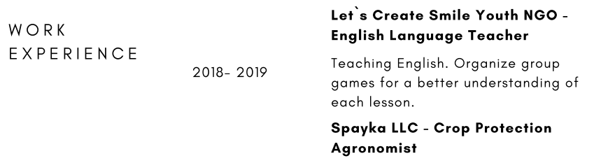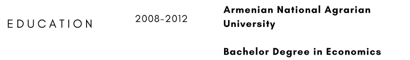 教學經(jīng)驗: 2018-2019:英語教師 2012-2014: 英語教學 教育背景: 亞美尼亞民族土地大學 本科 2008-2012 |