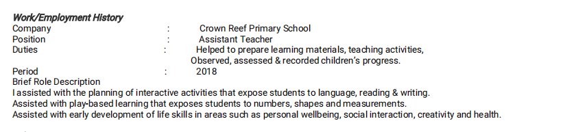 教學(xué)經(jīng)驗: 2018 小學(xué) 助教 2018-至今: 培訓(xùn)學(xué)校 英語老師 教育背景: 2010 早期教育專業(yè) 本科 TEFL | |||