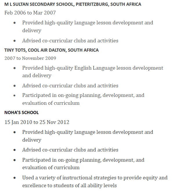 作為一名熱情敬業(yè)的外語教師,10年的教學經(jīng)驗證明了良好的溝通能力。英語、印地語、旁遮普語高度流利;專門管理學生和最大化學習機會在不同的教室設置。廣泛的旅行,學習,在南非和巴基斯坦居住的經(jīng)驗。 |