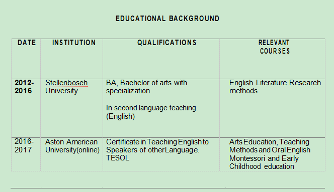 國(guó)籍: 牙買(mǎi)加 求職意向: 教師