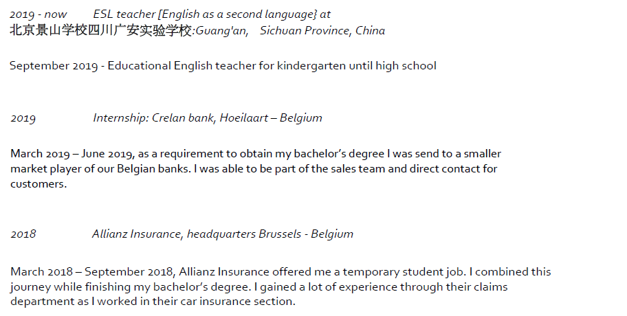 2019 -現(xiàn)在ESL教師(英語作為第二語言}在北京景山學(xué)校四川廣安實驗學(xué)校:光,四川,中國 |