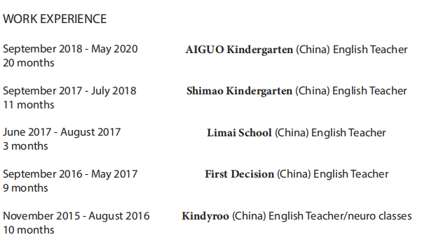 國籍: 塞爾維亞 求職意向: 教師