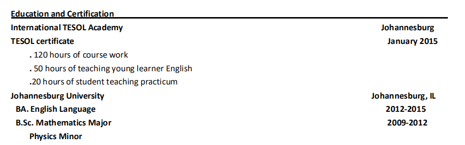 約翰內(nèi)斯堡大學英語和數(shù)學專業(yè)學士學位,有TESOL,在 泰國和中國有教學經(jīng)驗約3年 | |||