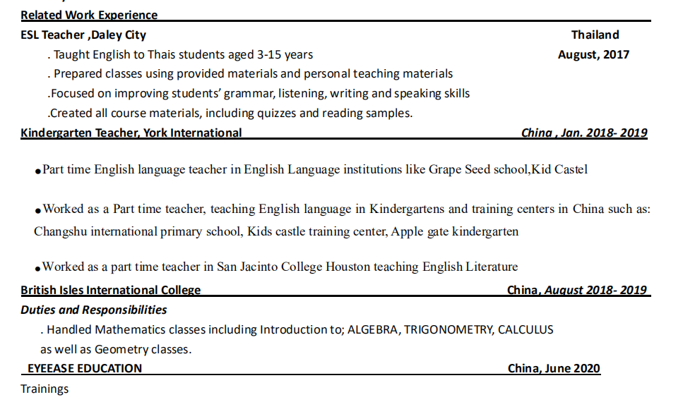 | 外教簡歷
