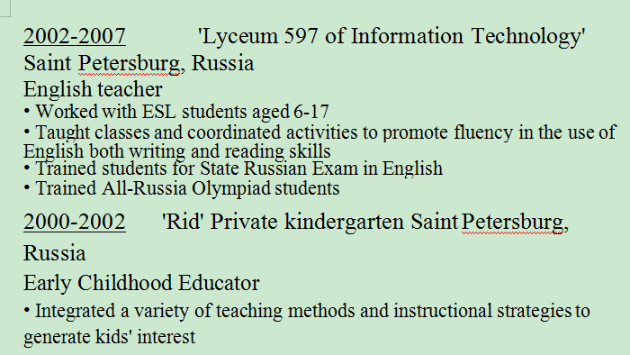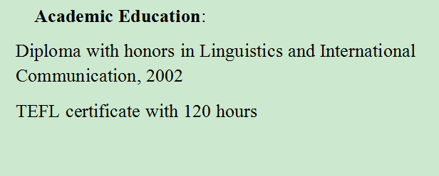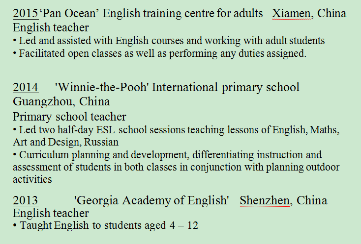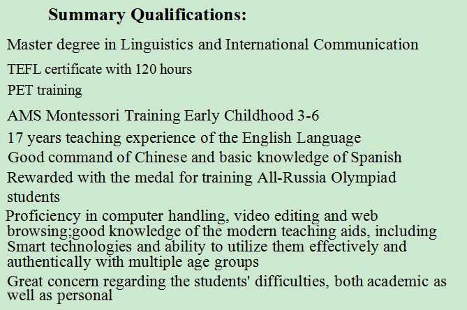國(guó)籍: 俄羅斯 求職意向: 教師