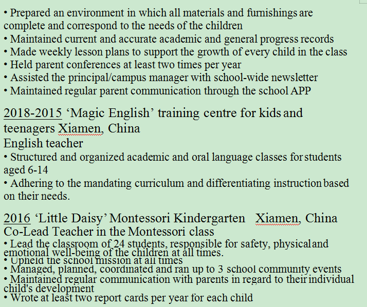 國(guó)籍: 美國(guó) 求職意向: 教師