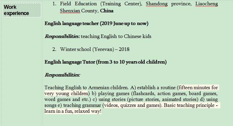國籍: 俄羅斯 求職意向: 教師