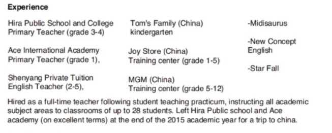 國籍: 巴基斯坦 求職意向: 教師