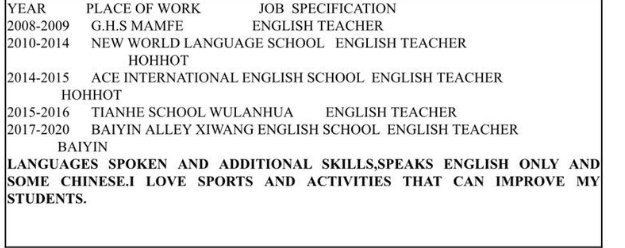 國(guó)籍: 南非 求職意向: 教師