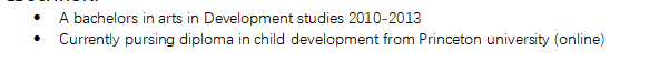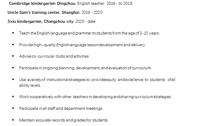 發(fā)展研究專業(yè)學士,有幼兒園和培訓機構(gòu)經(jīng)驗 |