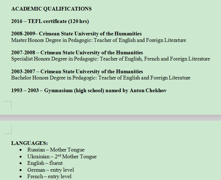 國(guó)籍: 俄羅斯 求職意向: 教師