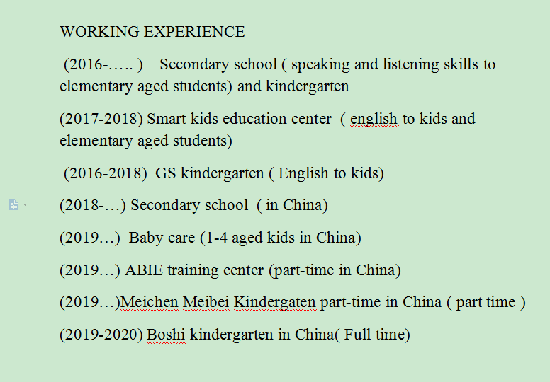 國(guó)籍: 南非 求職意向: 教師
