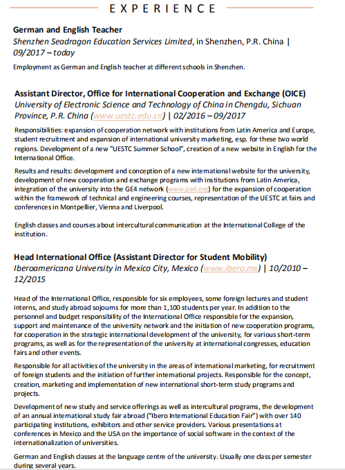 自我介紹,介紹年齡,教學經歷,熱愛教育和孩子,初中和高中都有經驗,德語,地理和英語都有經驗