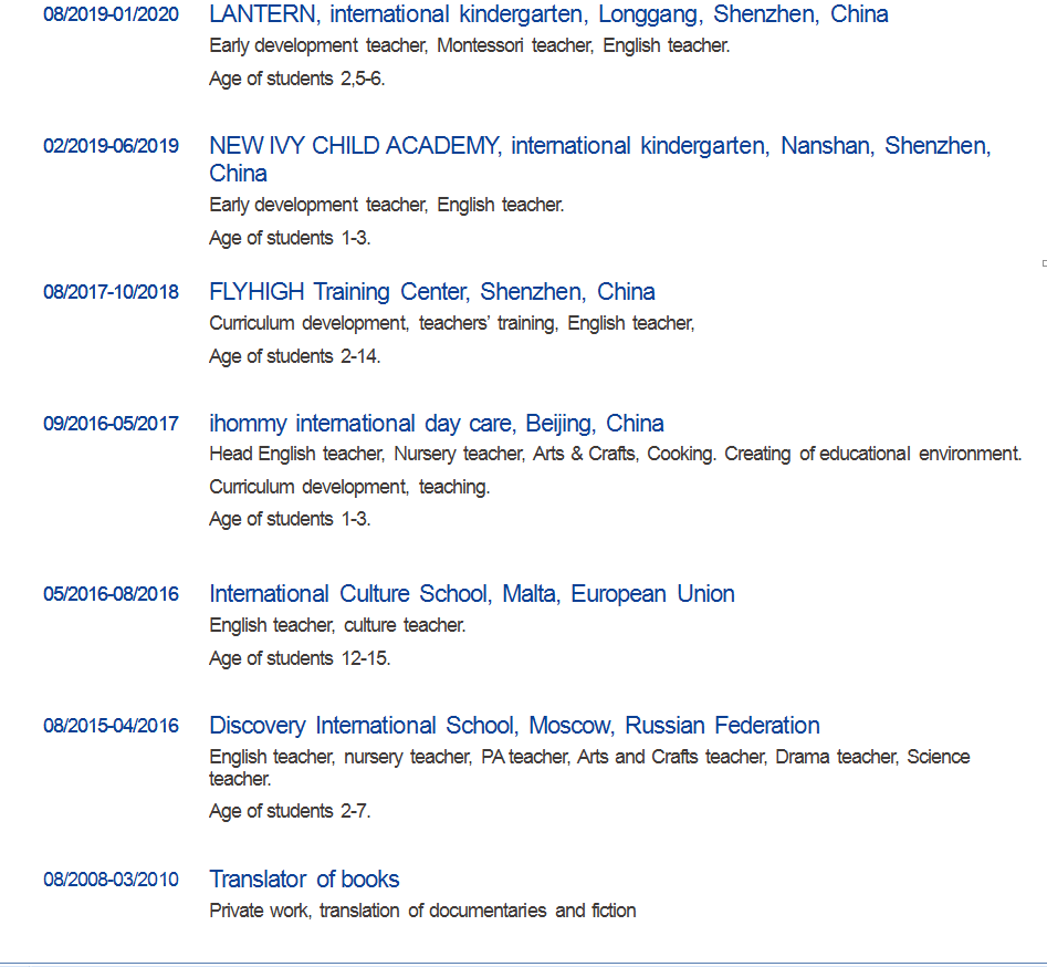 國(guó)籍: 俄羅斯 求職意向: 教師