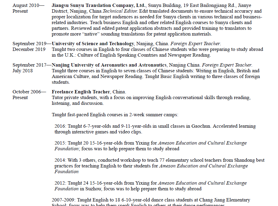 一個精力充沛,充滿激情的老師,具有優(yōu)秀的互動和對話技巧,對她的學生負責 |