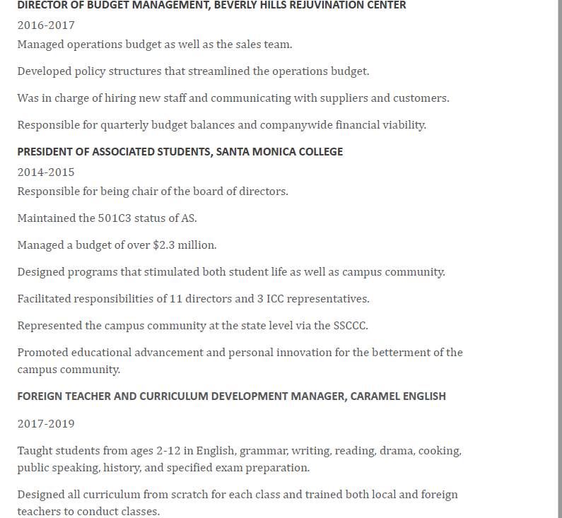 我是來(lái)自加州洛杉磯的美國(guó)人。我的技能包括管理、分析、市場(chǎng)營(yíng)銷、演示、計(jì)算、語(yǔ)言、寫作、銷售、領(lǐng)導(dǎo)力、課程開(kāi)發(fā)、演講指導(dǎo)和辯論、培養(yǎng)學(xué)習(xí)策略以及政策寫作。 |