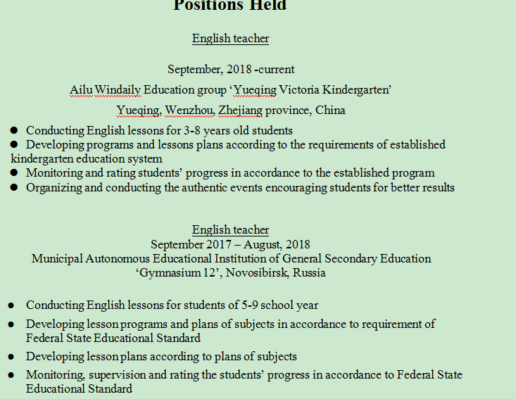 自我介紹,介紹學歷,4年教學經歷。2年本國,2年中國教學經驗。熱愛中國和教育--發(fā)音好