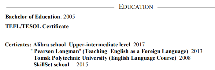 國(guó)籍: 俄羅斯 求職意向: 教師