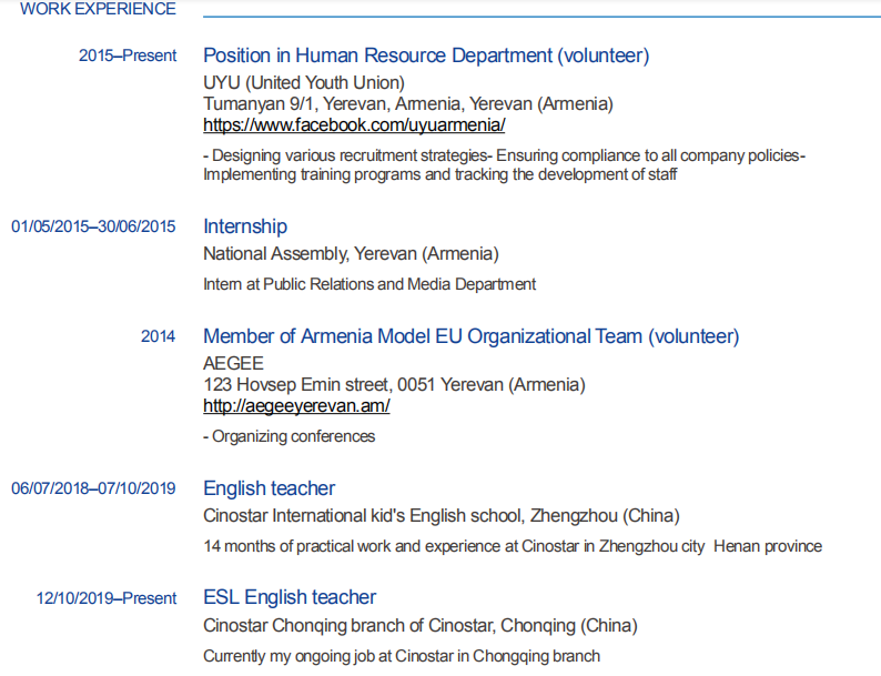 教育: 碩士, celta 工作經(jīng)歷: 亞美尼亞人力資源 鄭州英語老師 重慶英語老師 |