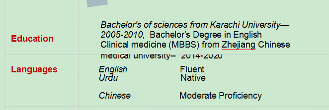 自我介紹,介紹學歷,教學經歷,培訓機構,家教都有做過,也能叫學科,會點漢語