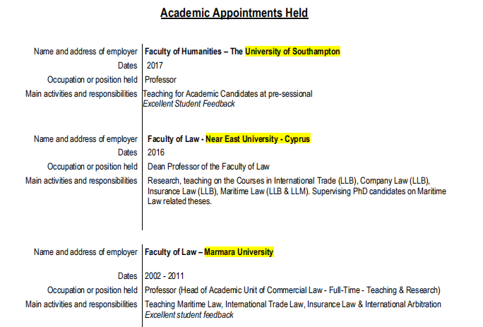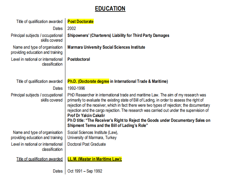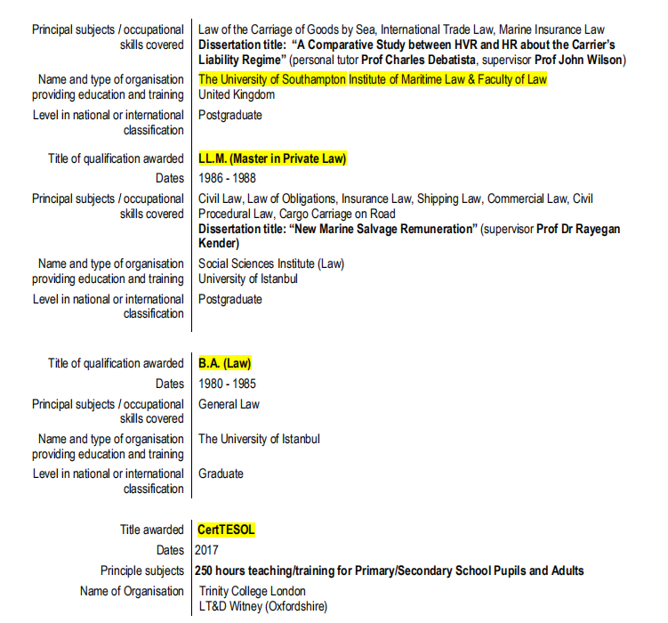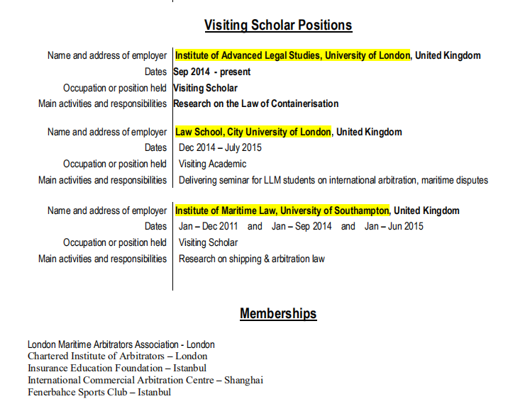 博士學(xué)位,主要從事貿(mào)易及法律相關(guān)專業(yè)研究,獲得私法和國際法基金獎,在鹿特丹,倫敦海事仲裁員協(xié)會學(xué)會、土耳其保險學(xué)會等擔(dān)任特設(shè)國際仲裁員;在英國南安普敦大學(xué)和倫敦大學(xué)擔(dān)任訪問學(xué)者;倫敦海事仲裁員協(xié)會、伊斯坦布爾保險教育基金會、上海國際商事仲裁中心等會員。 |