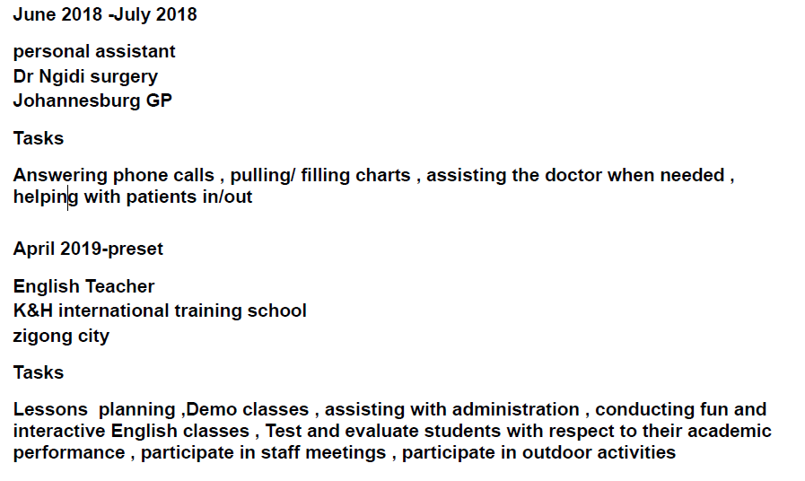 國籍: 南非 求職意向: 教師