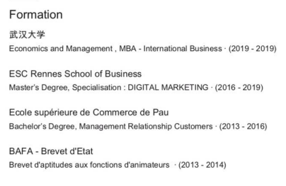 2016-2019 武漢大學碩士 2013-2016 本科 客戶關(guān)系管理專業(yè) |