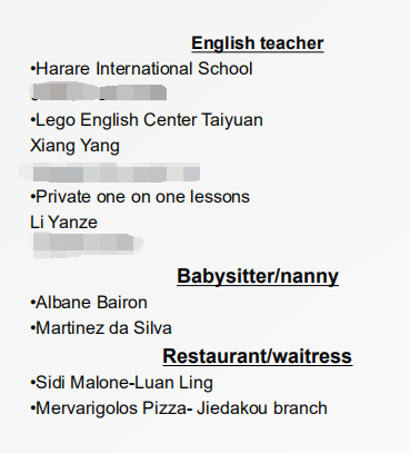 教學(xué)經(jīng)驗(yàn): 英語(yǔ)老師?哈拉雷國(guó)際學(xué)校 樂(lè)高英語(yǔ)中心太原祥陽(yáng)楊 私人一對(duì)一課李延澤 教育背景: 劍橋O'level 2014 ?劍橋AS Level 2015 ?幼兒發(fā)展-幫助孩子發(fā)展在所有發(fā)展領(lǐng)域。 ?身體健康,情緒健康和身體技能,社交和情緒發(fā)展,學(xué)習(xí)方法,思維能力,常識(shí)和溝通能力,語(yǔ)言和讀寫能力。 ?課程計(jì)劃-制定課程計(jì)劃,并整合學(xué)生的學(xué)習(xí)目標(biāo)。 教學(xué)/學(xué)習(xí)活動(dòng)和檢查學(xué)生的策略理解。 ?學(xué)生評(píng)估-使用基本概念進(jìn)行評(píng)估學(xué)生對(duì)本學(xué)科的掌握和對(duì)學(xué)生的幫助學(xué)習(xí)和理解。 ?拼音-幫助孩子理解字母原則,并幫助他們學(xué)習(xí)聲音和字母之間的關(guān)系,以便它們可以開始流利閱讀  |