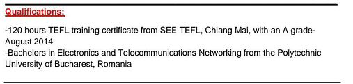 羅馬尼亞 , 本科, tefl 經(jīng)驗: 福州英語老師。 昆明英語老師2年 泰國英語老師2年經(jīng)驗 |