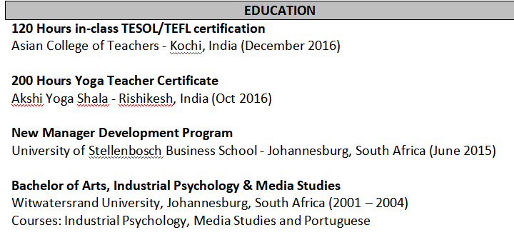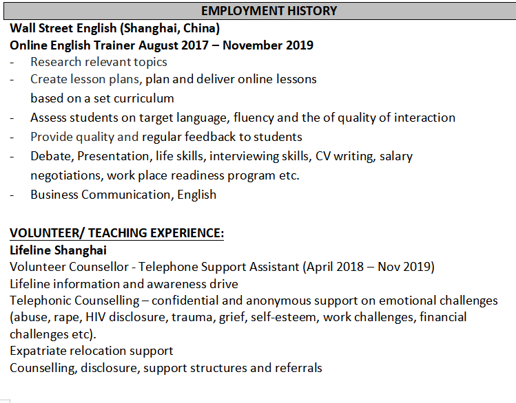 南非 本科- 文學(xué)學(xué)士學(xué)位,心理學(xué)瑜伽證-200小時(shí) tefl-120小時(shí), 有經(jīng)驗(yàn)3年以上, 工作簽證資料齊全, 求職可以辦理工作簽的學(xué)小。  |