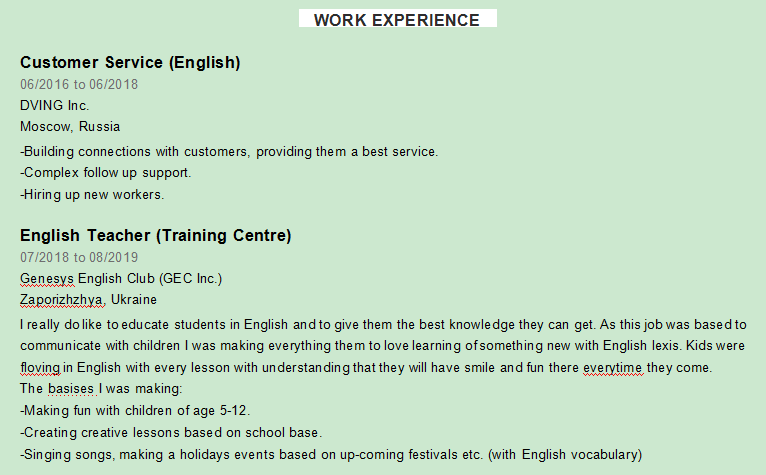 國籍: 俄羅斯 求職意向: 教師